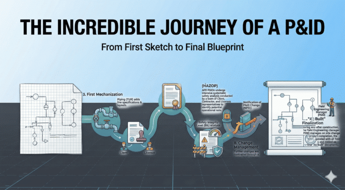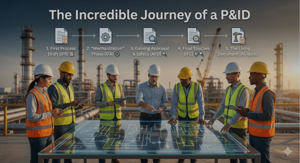 Whether it’s a refinery or a chemical plant, the P&ID shows how every piece of equipment, every pipe, and every control instrument connects. It is the single source of truth for the project. 🗺️ This guide walks you through the P&ID lifecycle, from a simple draft to the final “As-Built” document.